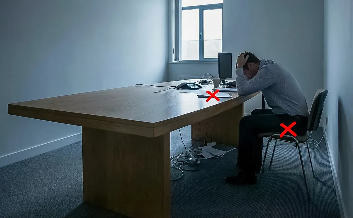 دفترهایی وجود دارند که با هزینه زیاد مبلمان تهیه کردهاند، اما میزها بزرگتر از فضای اتاق بوده یا مسیر حرکت کارکنان را مسدود کردهاند.