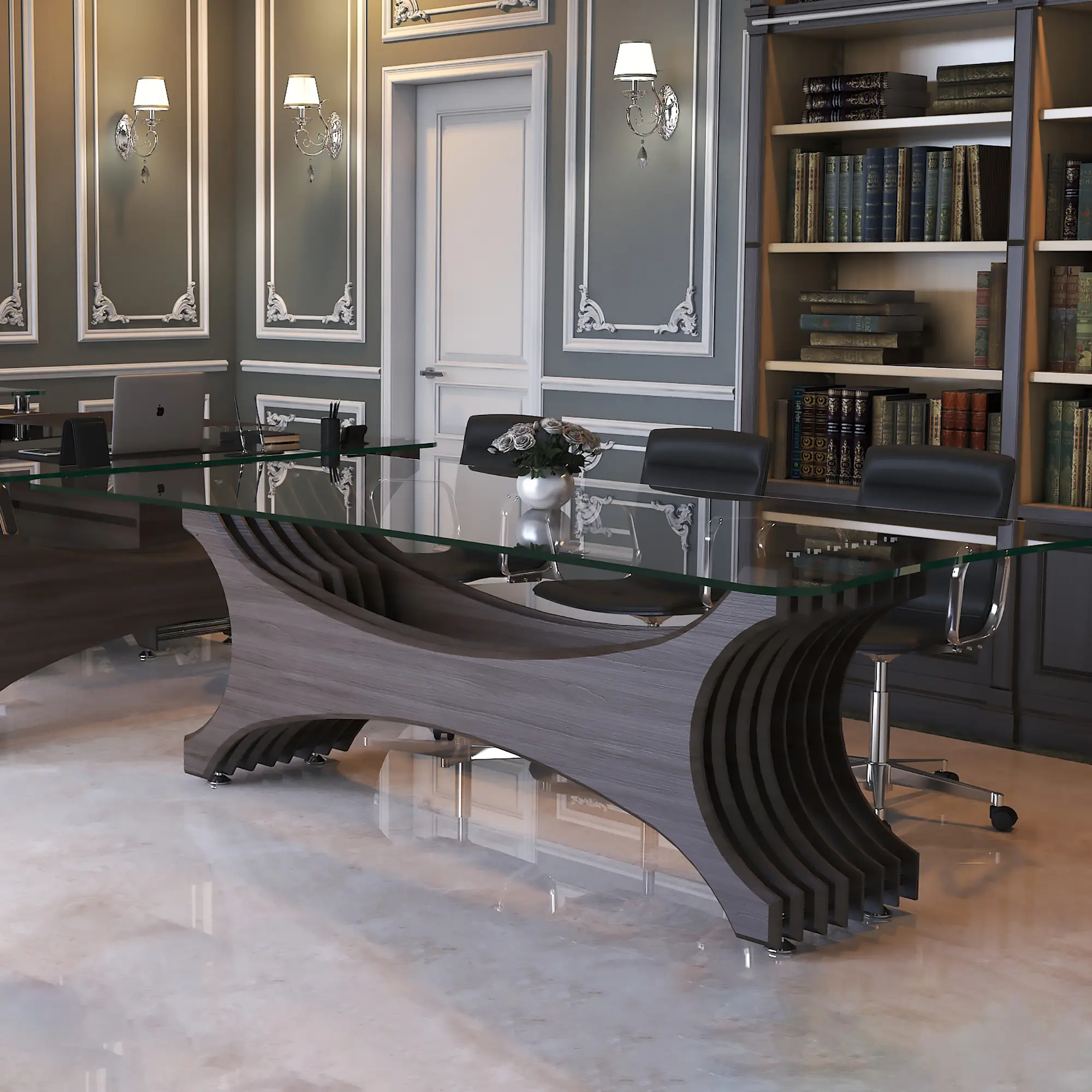 میز کنفرانس ER930C از خانواده NICE در مبلمان ارکات بهگونهای طراحی شده که هم بهعنوان ست میز مدیریت ER930 و هم بهصورت استفاده مستقل کاملاً کاربردی و هماهنگ باشد. این مدل با صفحه شیشهای ۱۵ میلیمتری جلوهای مدرن و رسمی به فضای جلسه میدهد و در عین حال استحکام بالایی برای استفاده روزمره دارد.