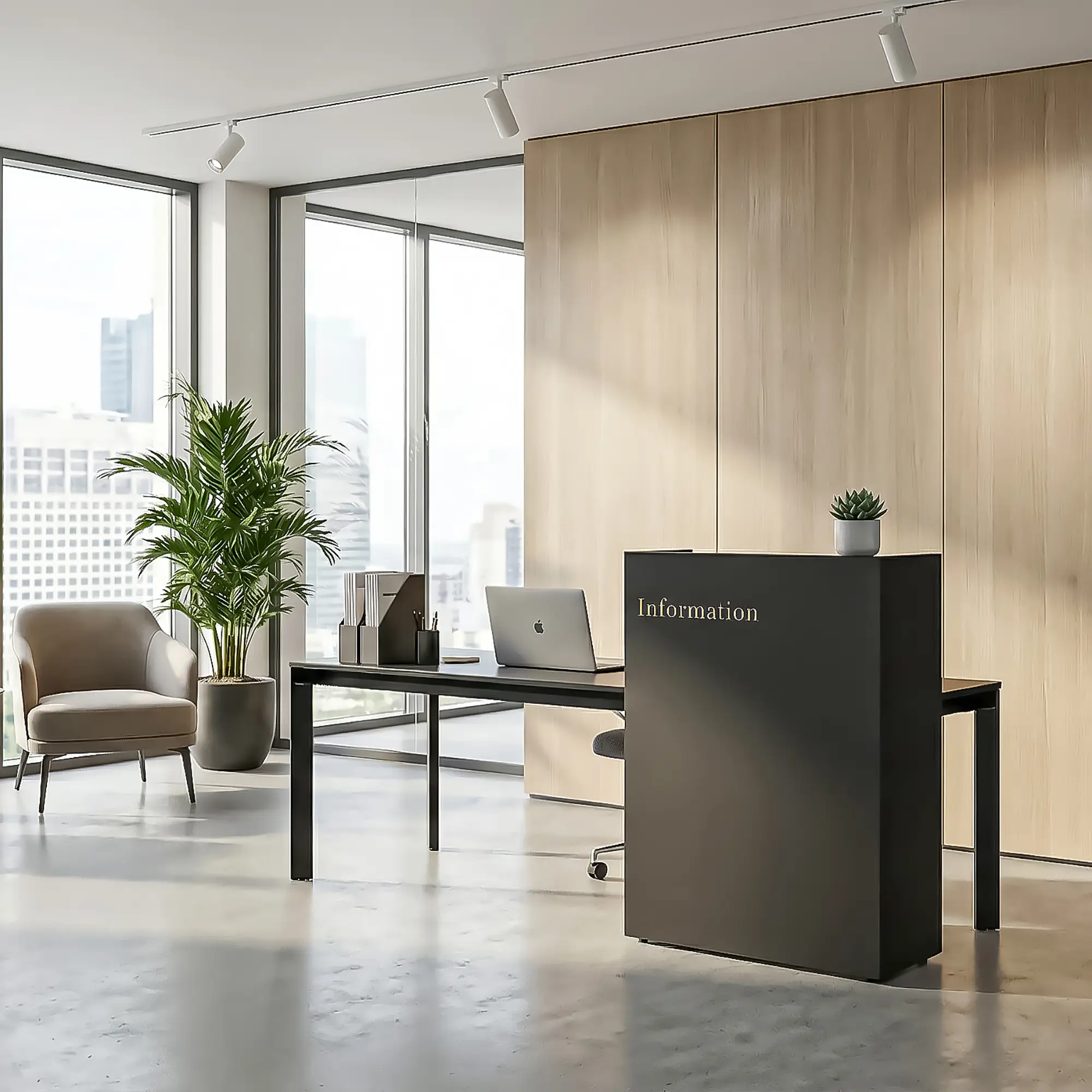 کانتر پذیرش و اطلاعات کد VM950 ارکات با طراحی جدید و مینیمال، انتخابی هوشمندانه برای فضاهایی است که اولین برخورد مخاطب با محیط در آنها اهمیت دارد. این مدل با خطوط ساده و فرم یکپارچه، حس نظم و حرفهای بودن را به لابیها و بخش پذیرش منتقل میکند و بهراحتی با دکوراسیونهای اداری مدرن هماهنگ میشود.