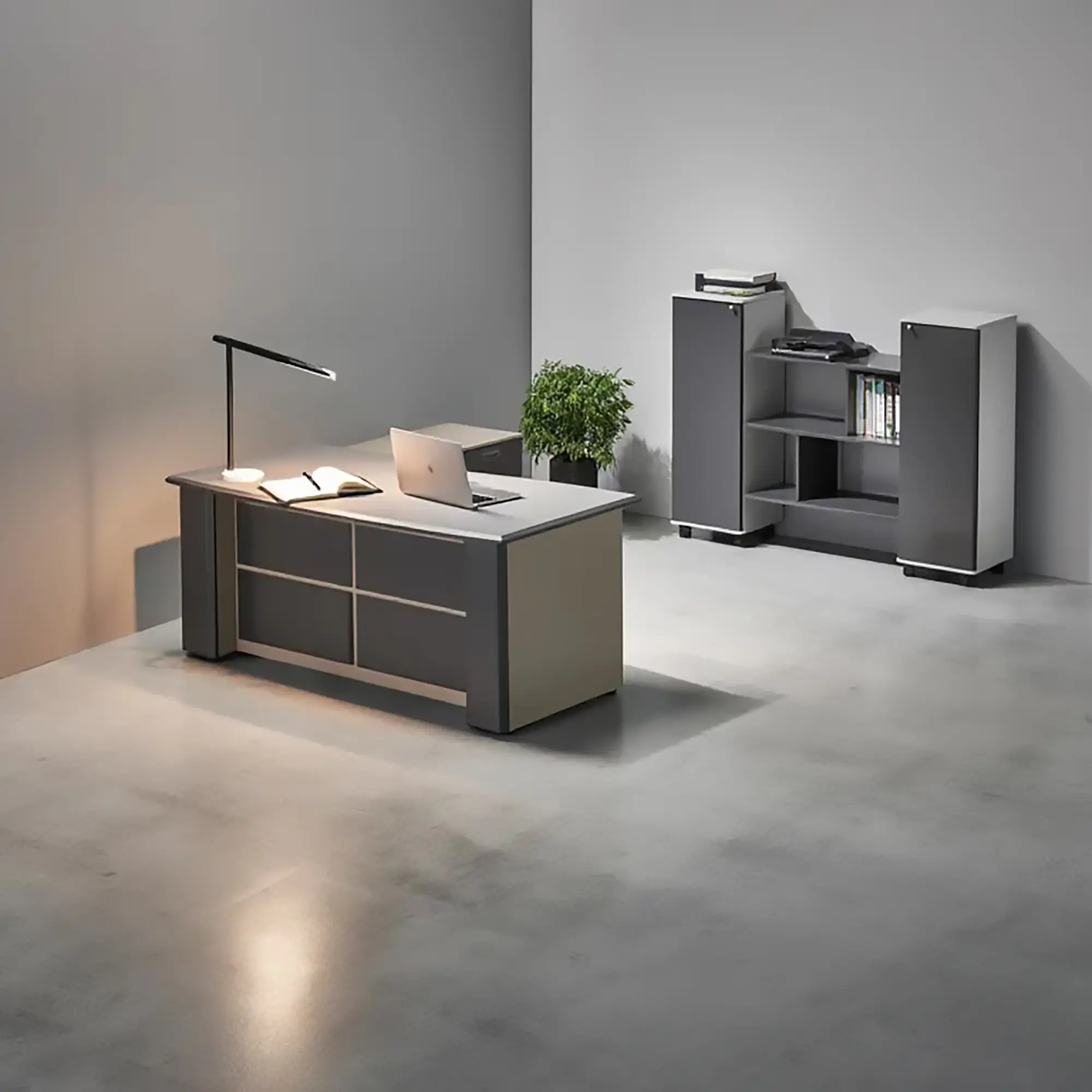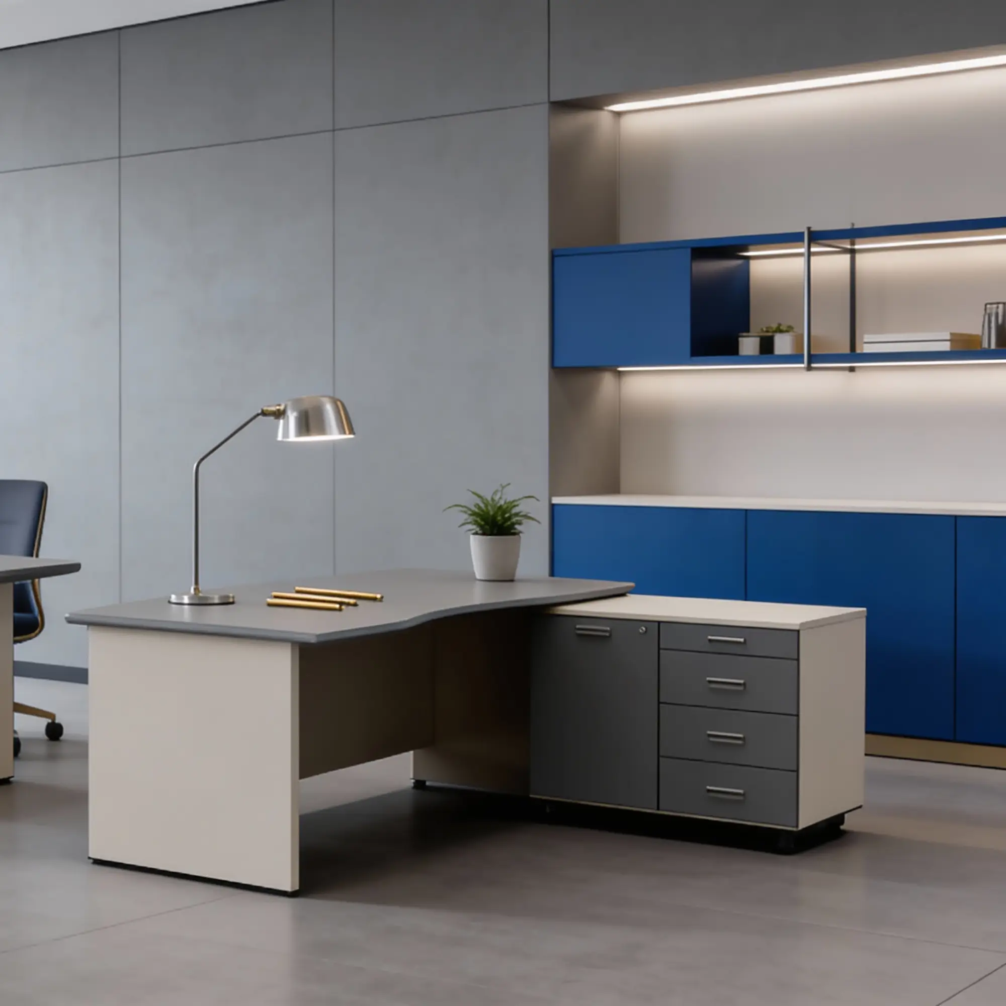 ویژگی شاخص ER700-M، ال مجزا آن است که امکان قرارگیری در دو طرف میز یا حتی زیر میز را فراهم میکند. این انعطاف در چیدمان باعث میشود میز بهراحتی با ابعاد اتاق و سبک کاری مدیر هماهنگ شود و در عین حال سطح کار و فضای ذخیرهسازی افزایش یابد. طراحی رسمی و یکپارچه این مدل، محیط مدیریت را منظم، حرفهای و کاربردی نشان میدهد.