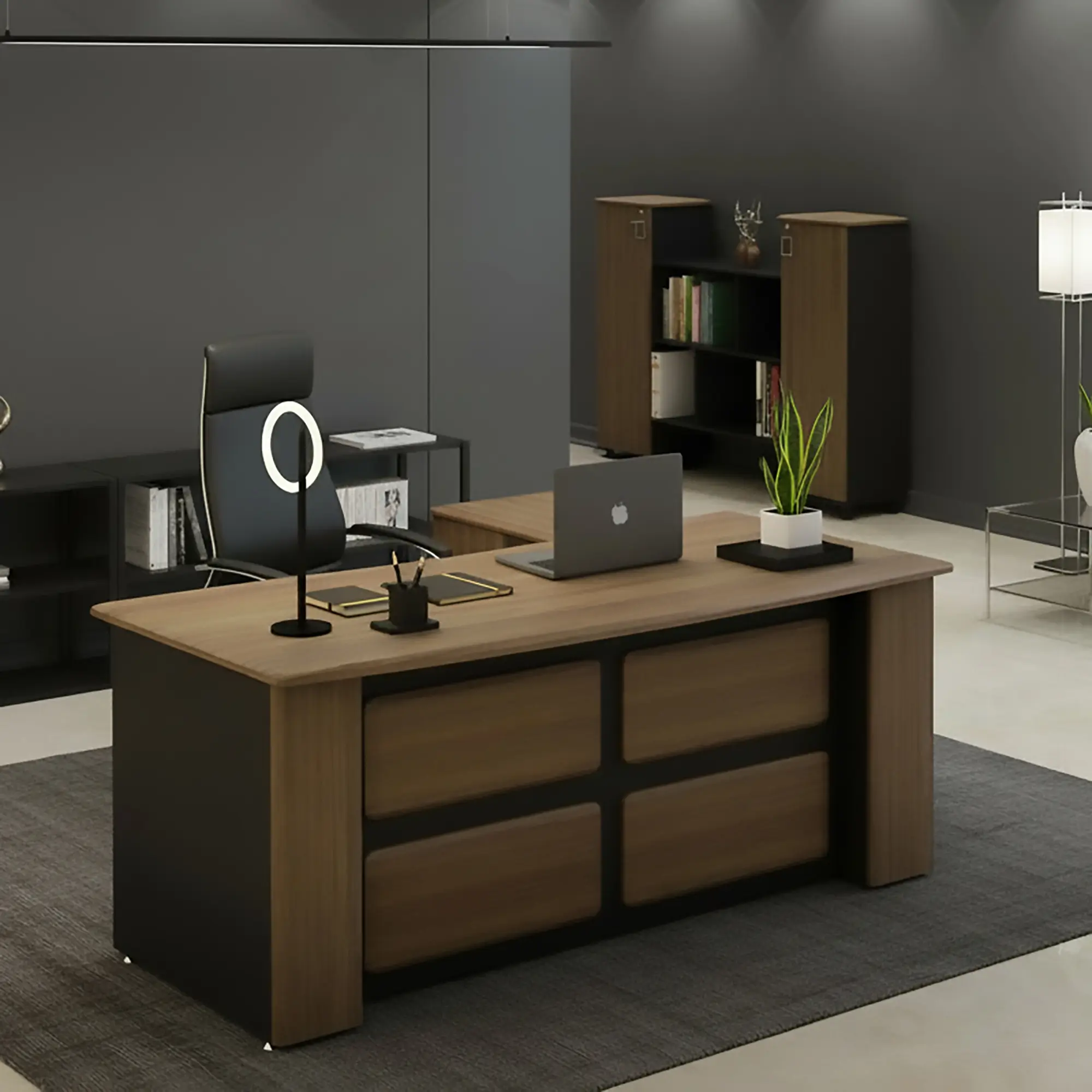 میز مدیریت کد ER700-M از خانواده NICE در مبلمان ارکات با طراحی الدار و ماژولار، پاسخی دقیق به نیاز دفاتر مدیریتی حرفهای است. این مدل به ۴ کشوی کاربردی و یک کمدچه بایگانی مجهز شده تا فضای کافی برای نگهداری اسناد، پروندهها و لوازم مدیریتی در اختیار شما قرار دهد.